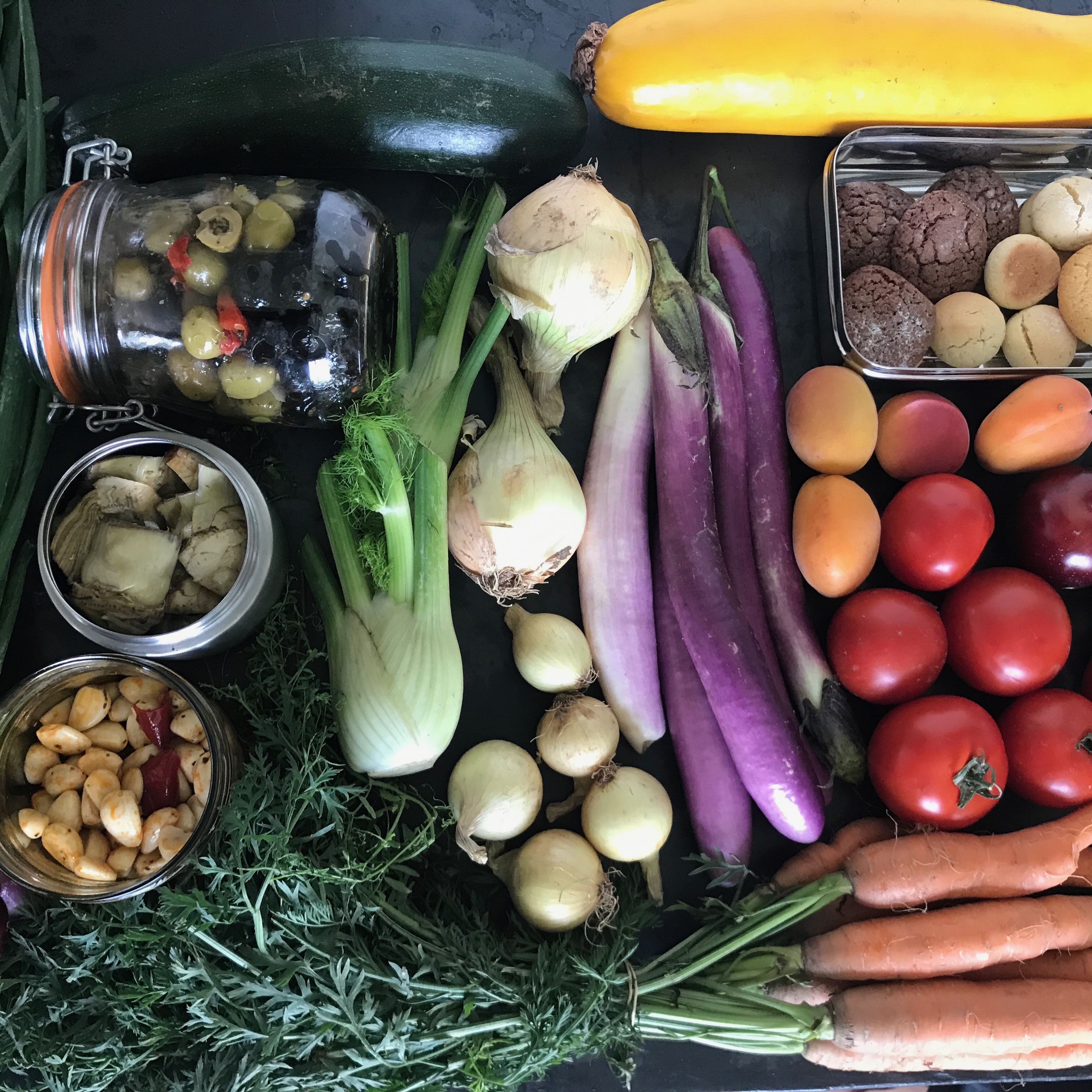 légumes, fruits (le reste est souvent sous-vide ou en sachet, dommage)